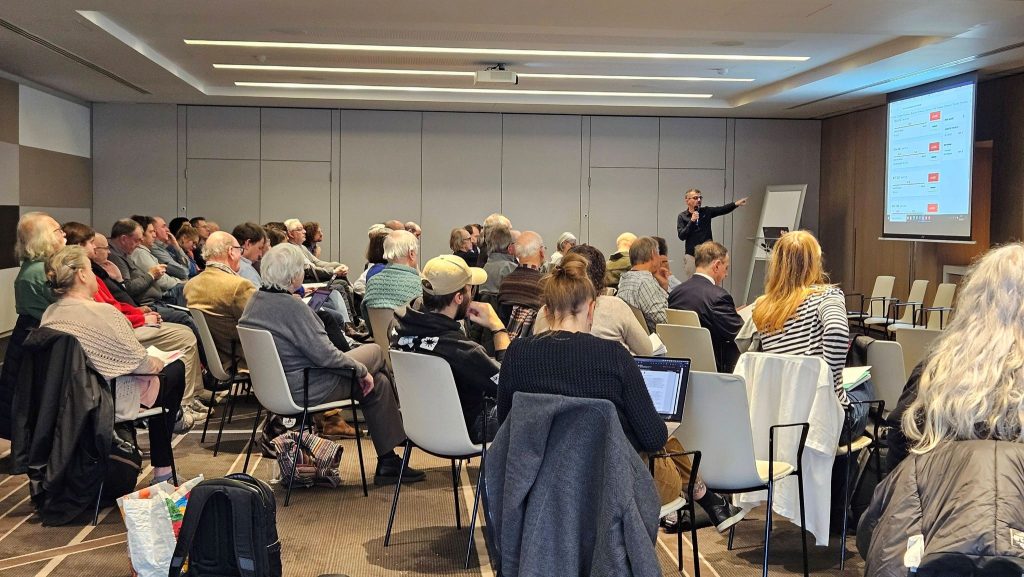 La journée s’est déroulée selon cinq moments. Julien Laporte et Duncan Smith, pour l’association Navetteurs.be, ont d’abord présenté l’association, insistant sur sa modestie – trois bénévoles – et sur son rôle de représentation des usagers du train notamment au sein du Comité consultatif des voyageurs ferroviaires.